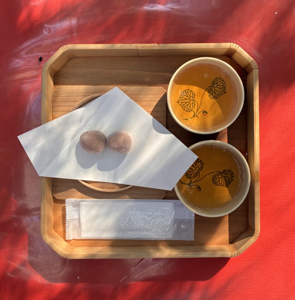 本来ならば、まず神様にご挨拶をしてから、お茶にしたいところだったのですが、