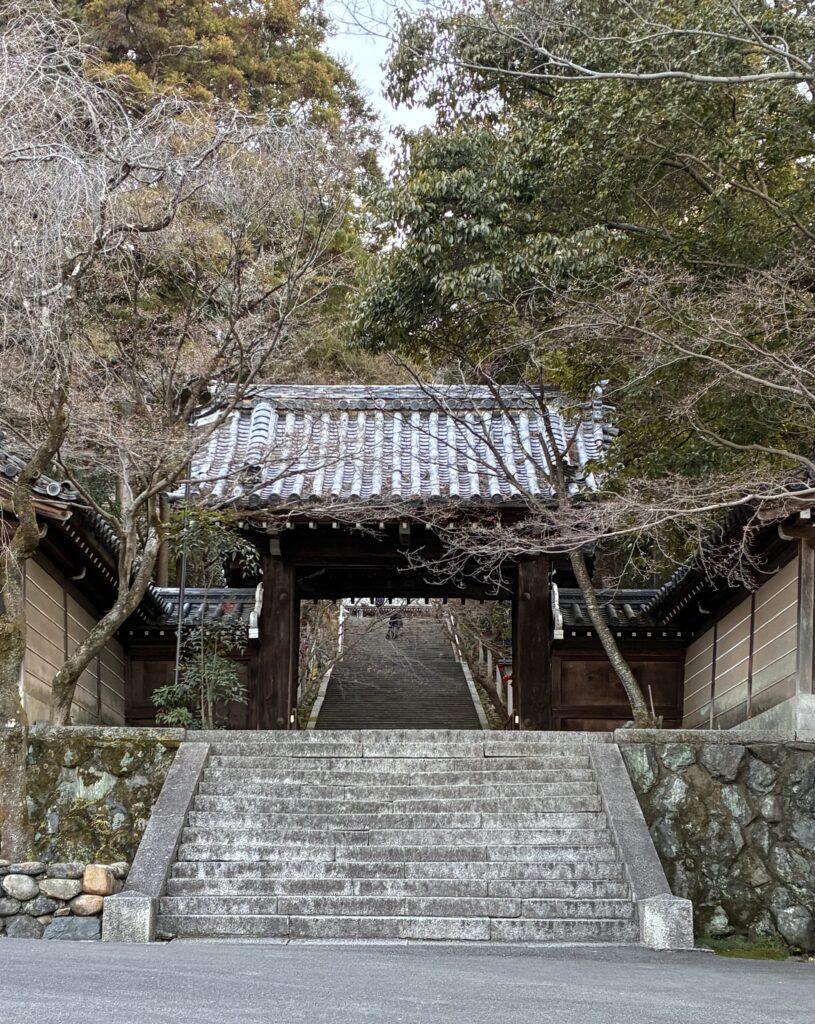 法輪寺は山門をくぐったら、すごい階段があるし…